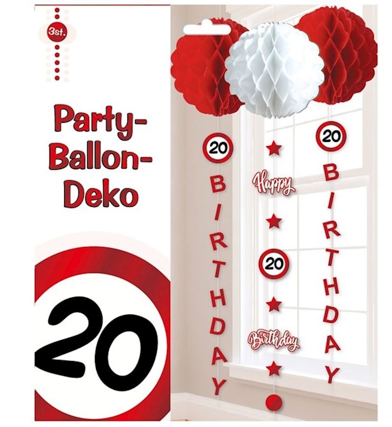 Hängedeko Happy Birthday 20 Jahre, 3 Wabenbälle mit