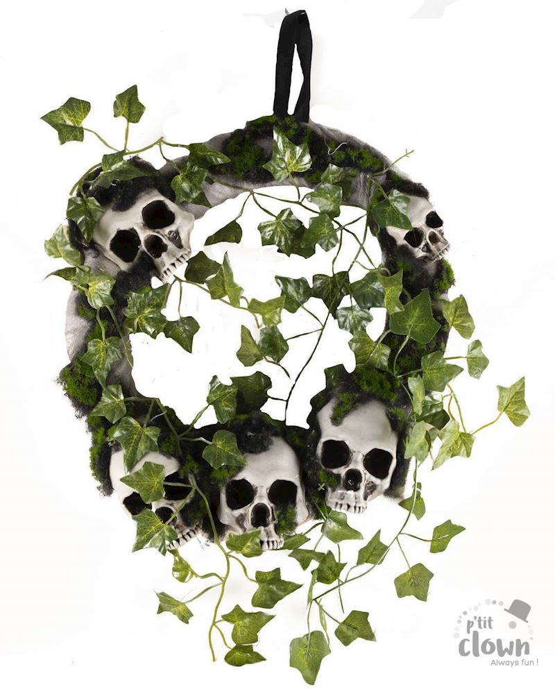 Kranz mit Efeu, Totenköpfen und Moos 35 cm