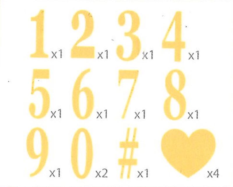 Set mit 12 Zahlen zum kleben + 4 Herzen 7.5 cm gold