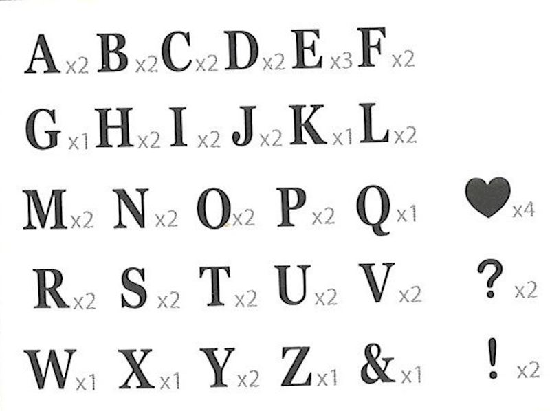 Set mit 56 Buchstaben inkl. 4x Herzen 7.5 cm zum kleben