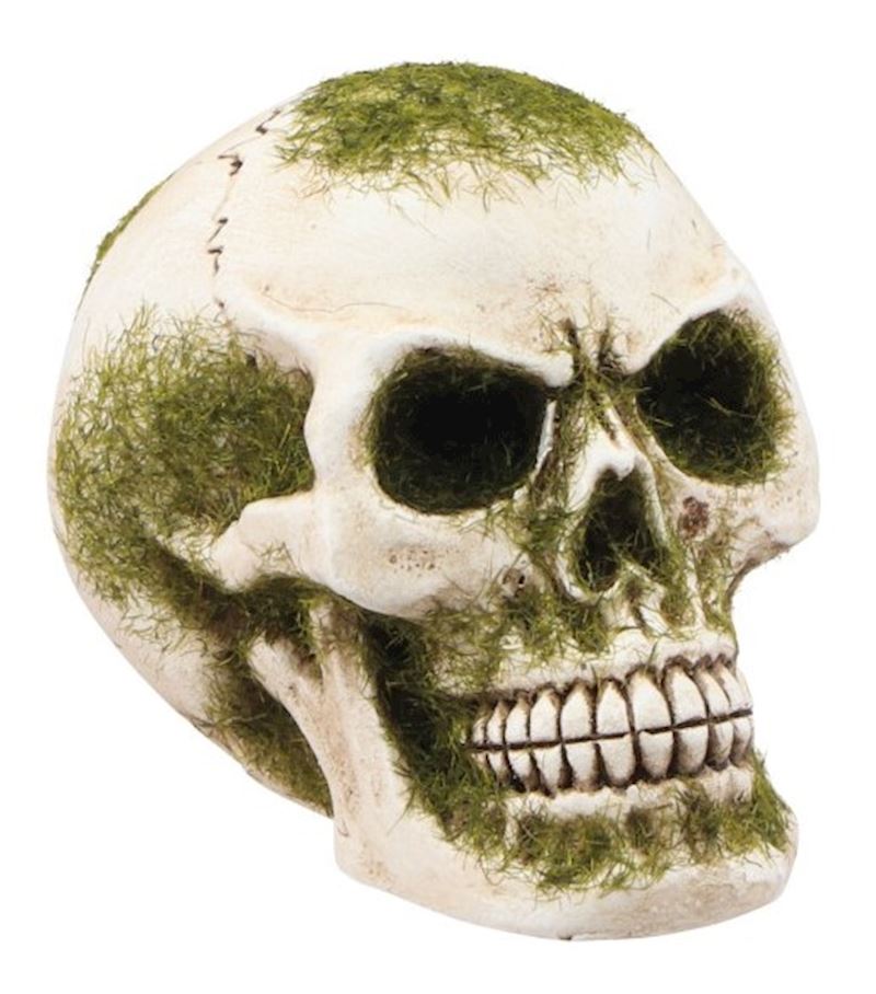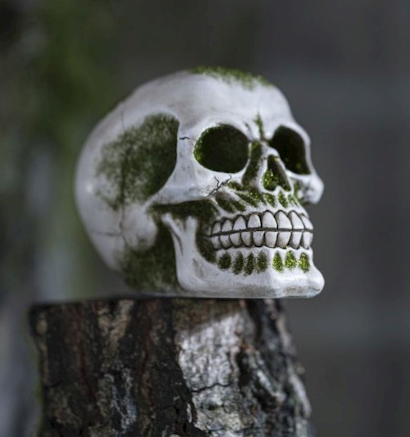 Totenkopf aus Resine mit Moos 10.5x15.5x12 cm