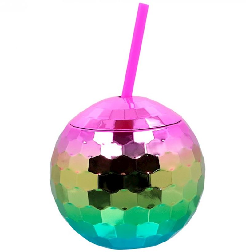 Discokugel Trinkkugel mit Strohhalm 650ml, 11 cm
