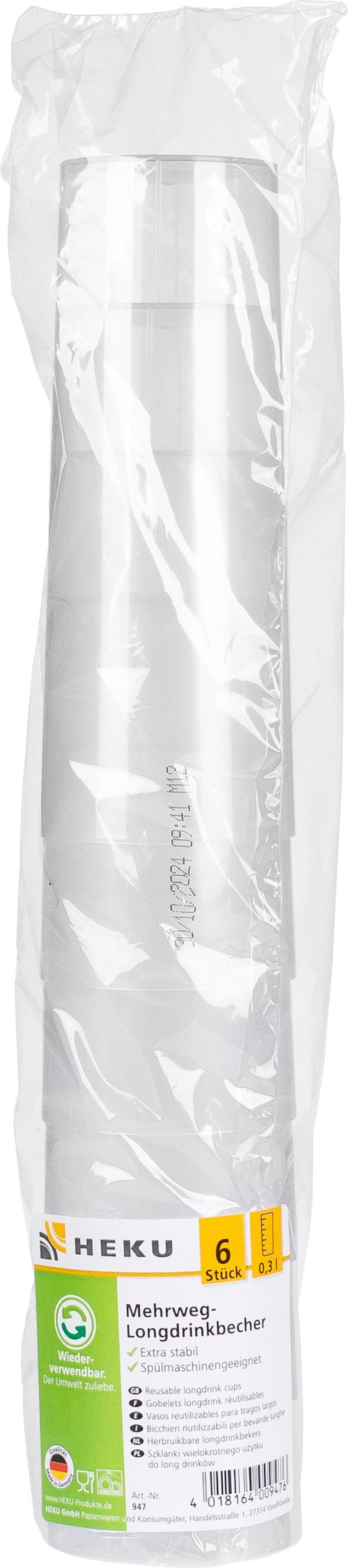 Mehrweg-Longdrinkbecher 3 dl 6 Stk. transparent
