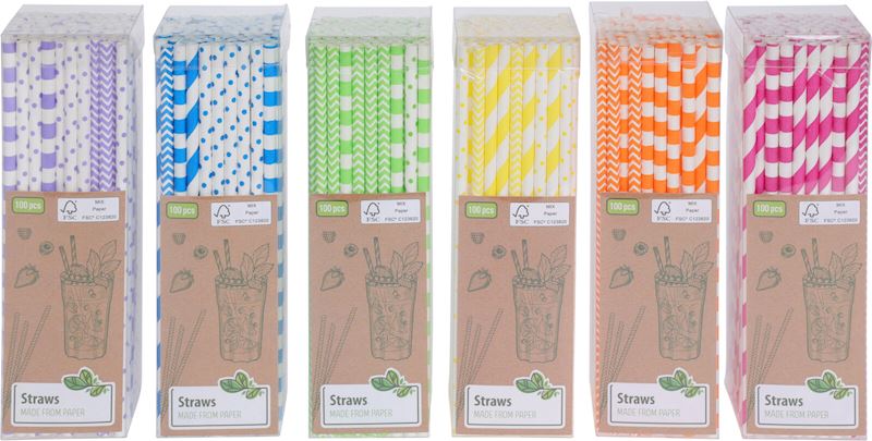 Papier Trinkhalme 100 Stk. 6 Farben sort. 20cm