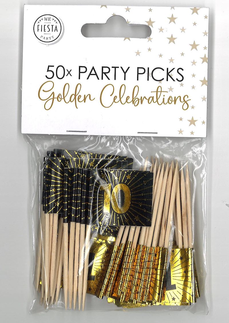 Party Picker Fahne 10, 50 Stk. Golden Celebrations