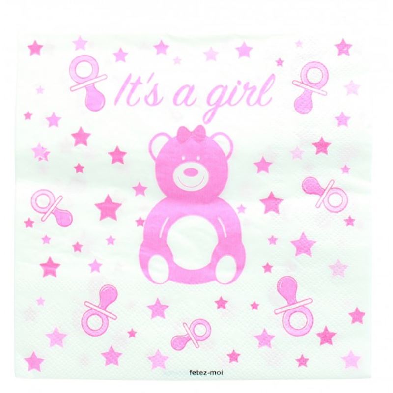 Servietten Baby Shower rosa 33x33 cm, 20 Stk.