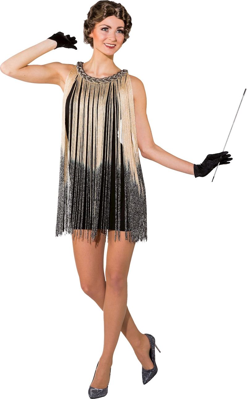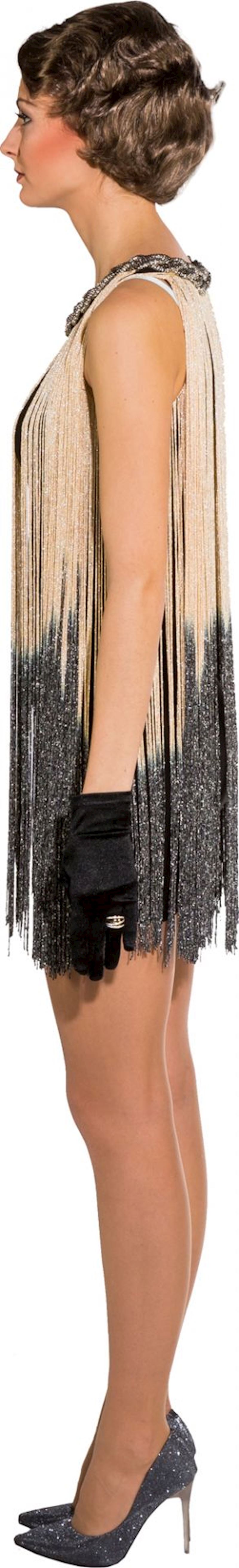 Kostüm Charleston 20er mit Fransen beige-schwarz onesize