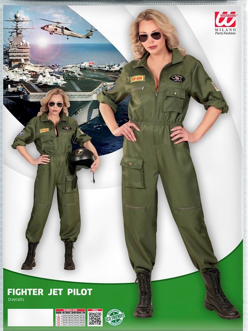 Kostüm Kampfjet Pilotin Gr. XL Overall grün Qualitäts-Stoff