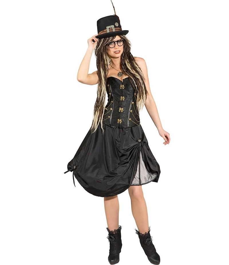 Steampunk Korsage schwarz mit Häkchen altgold, Grösse S