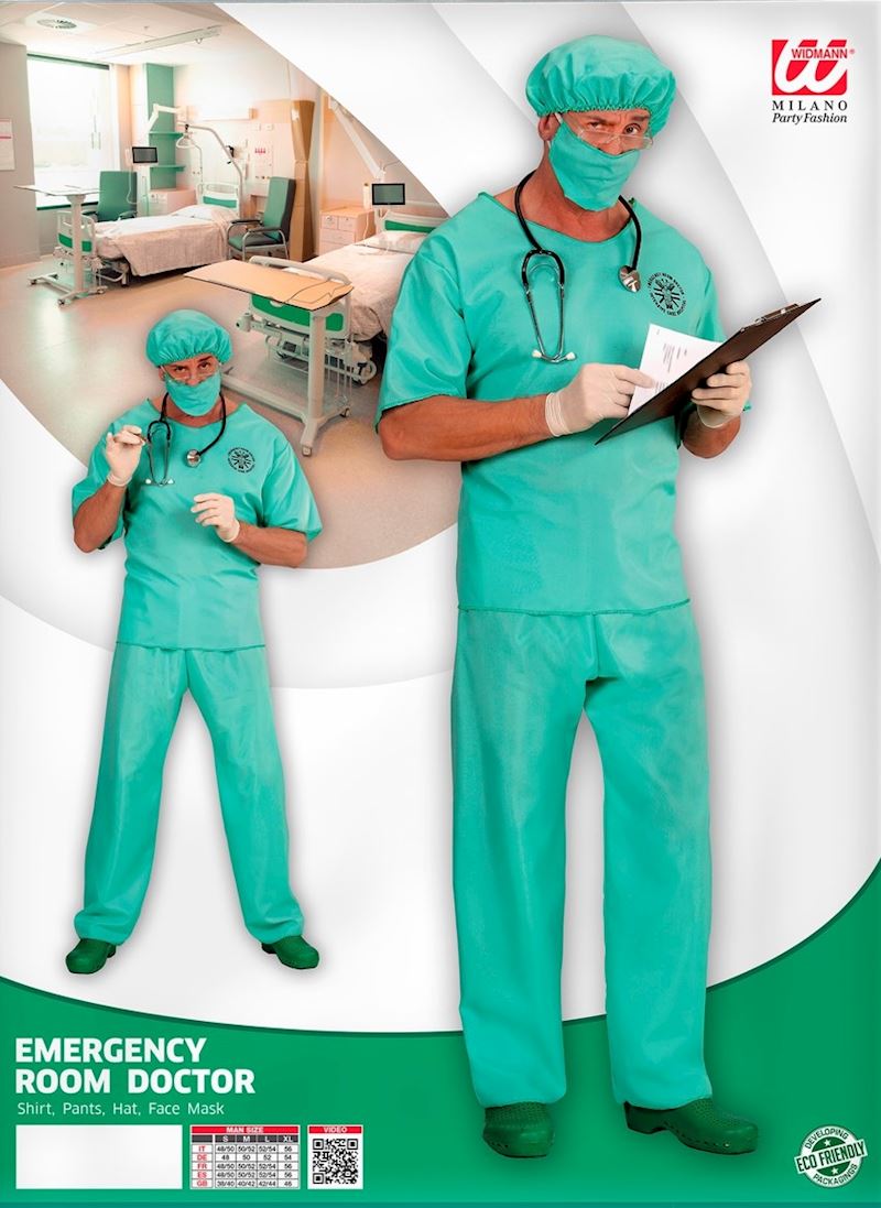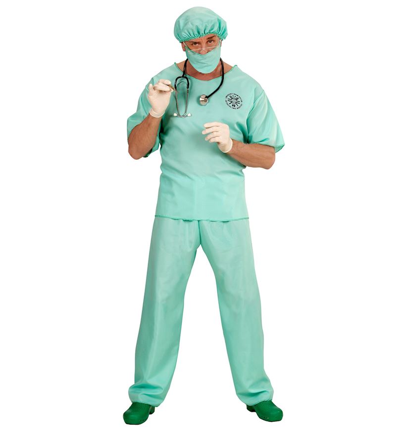 Kostüm Notarzt Oberteil, Hose, Hut und Mundschutz Grösse S