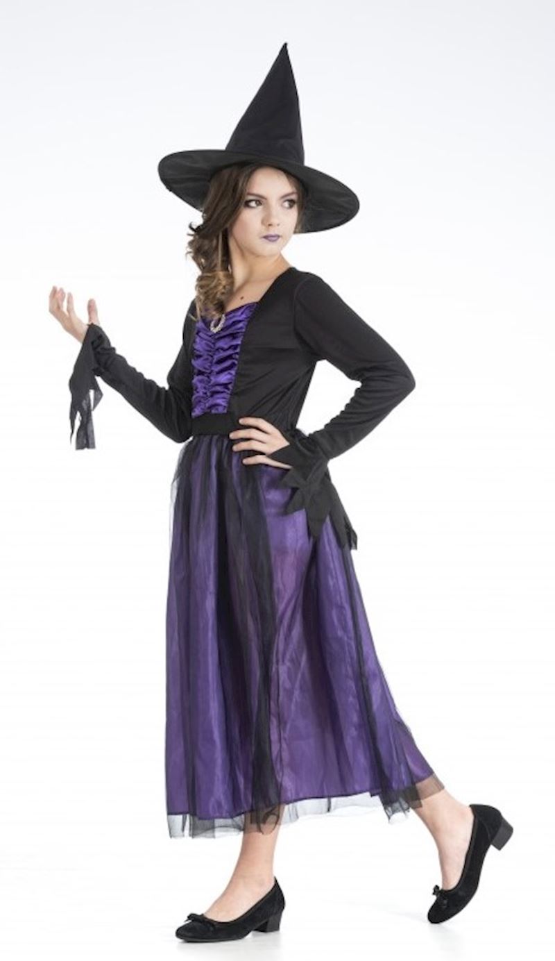 Kostüm Agatha Hexe mit Hut violett Grösse 116 cm