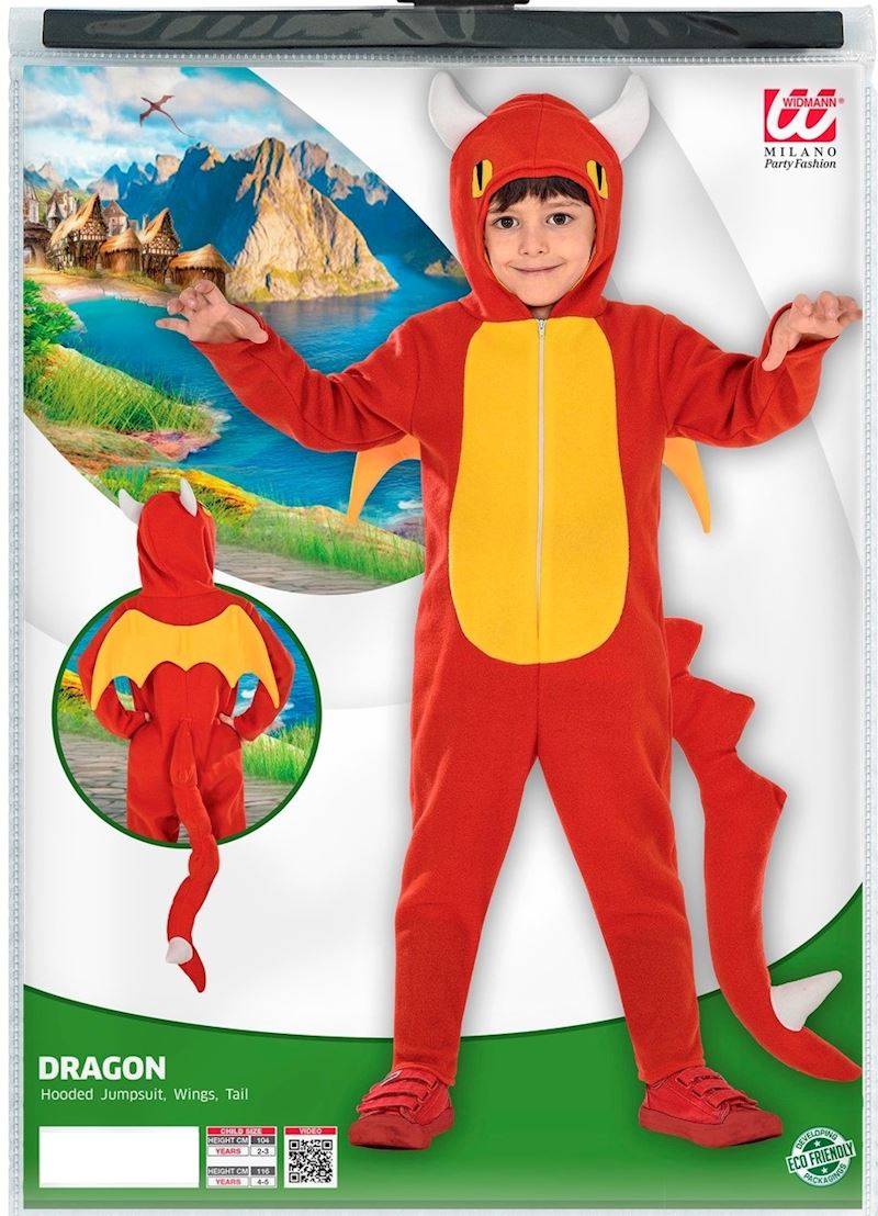 Kostüm Drache mit Kapuze rot, Gr. 104