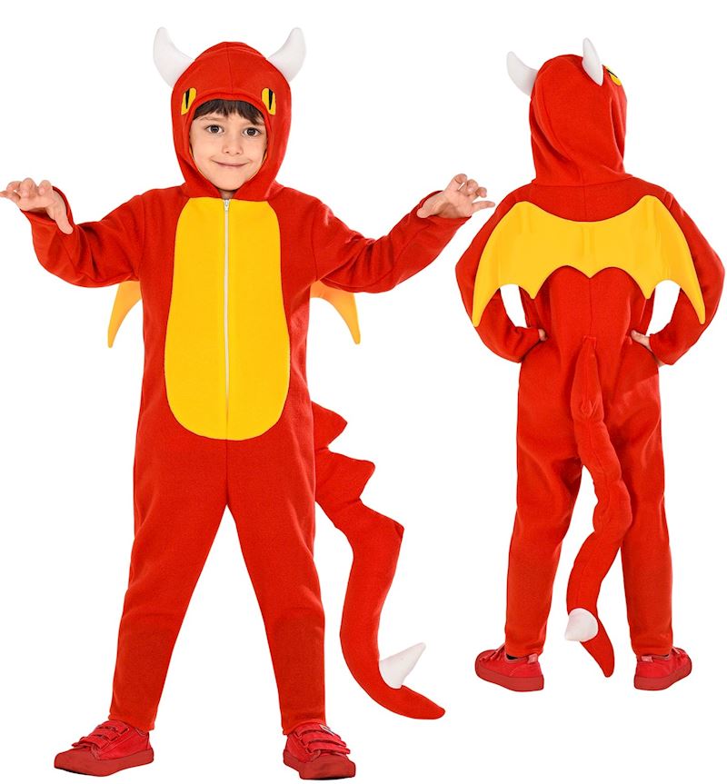 Kostüm Drache mit Kapuze rot,