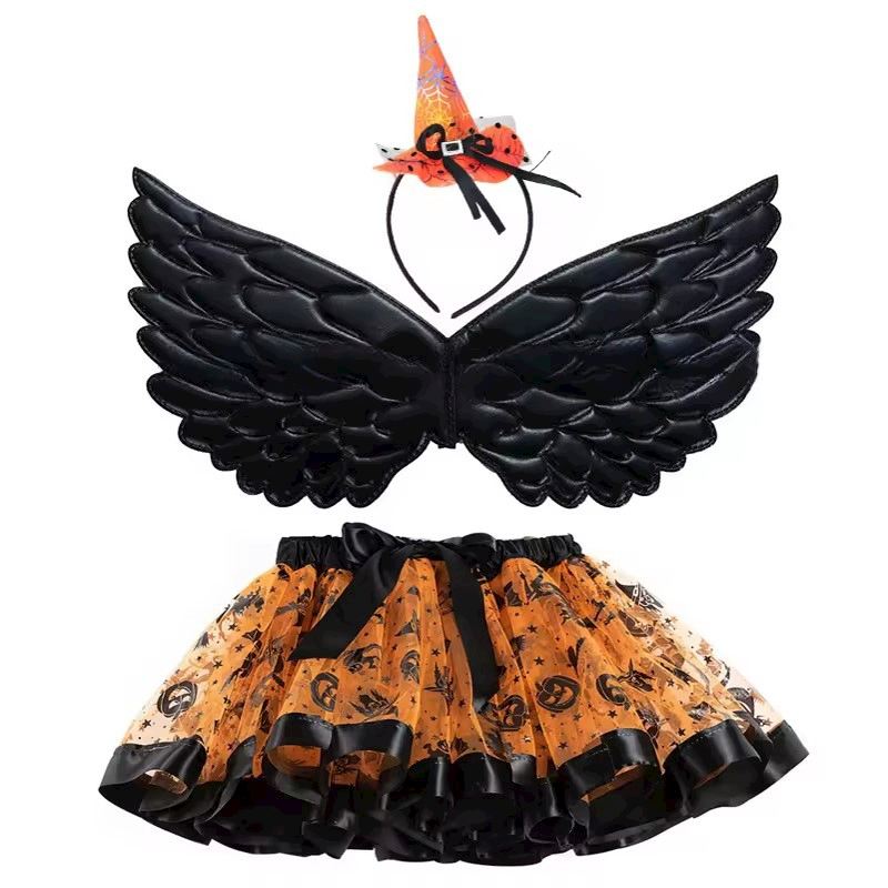 Kostüm Halloween 3-teilig Tiara, Flügel und Tutu 2 sort.