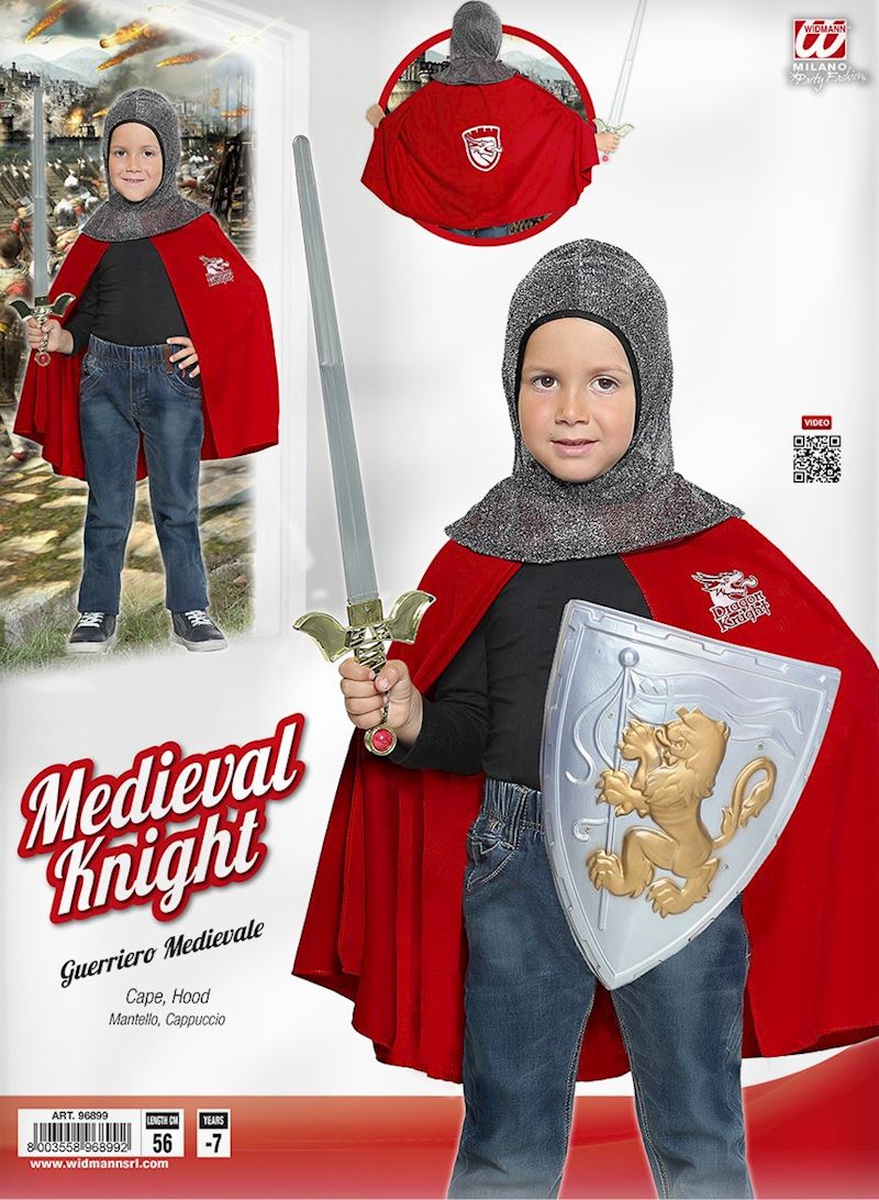 Umhang Ritter des Mittelalters mit Kapuze bis 7 Jahre