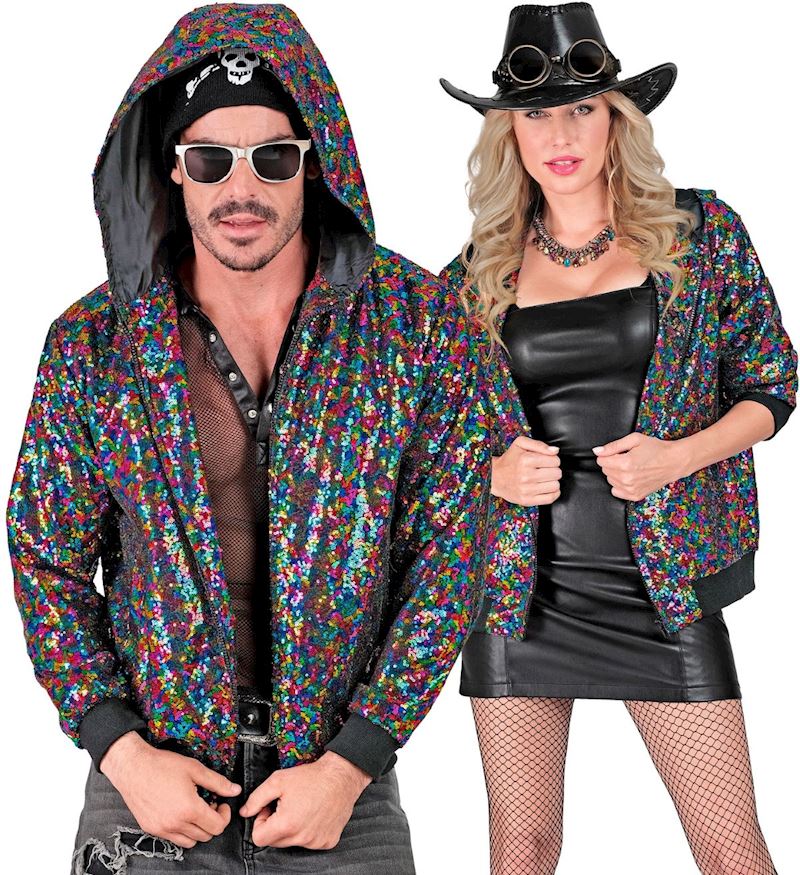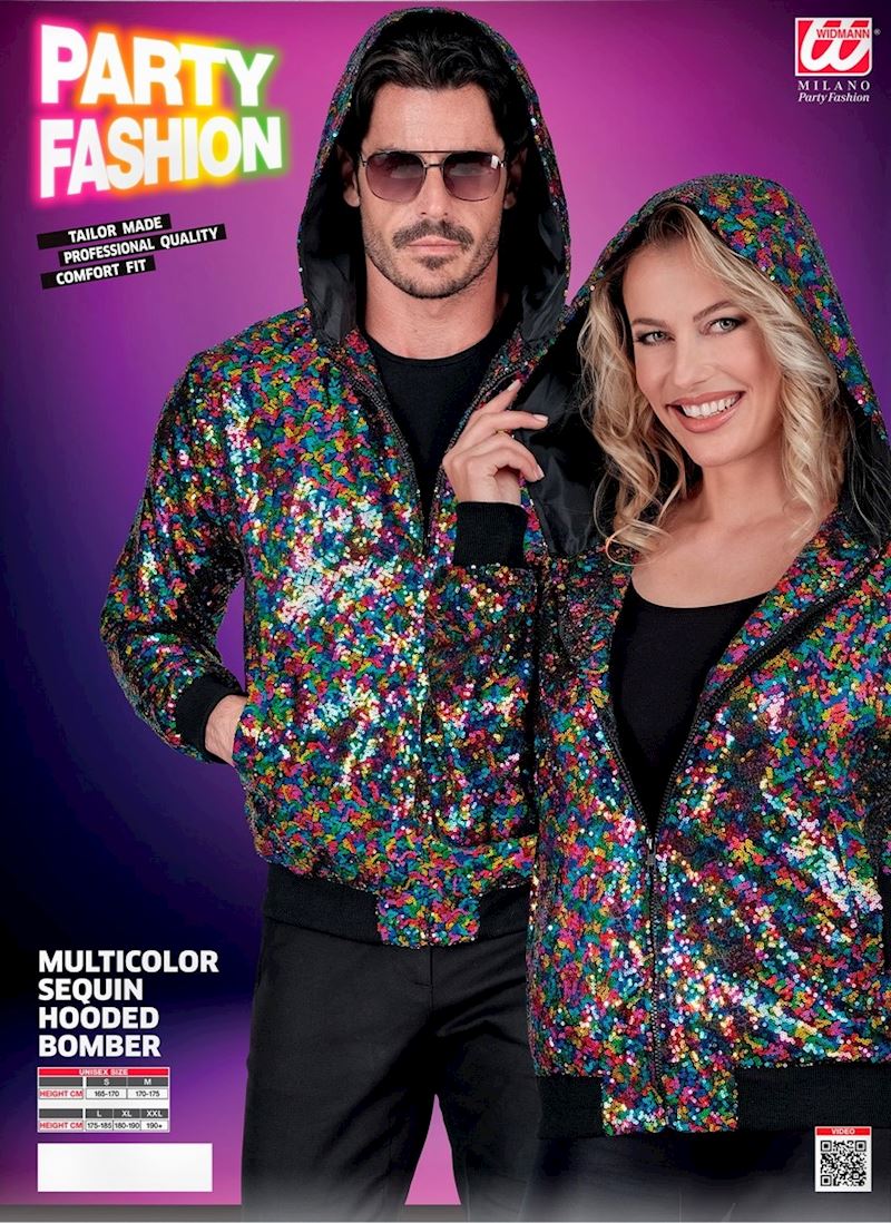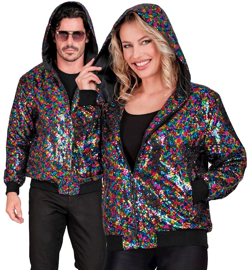 Bomber-Jacke mit Kapuze & Pailletten bunt Grösse L/XL