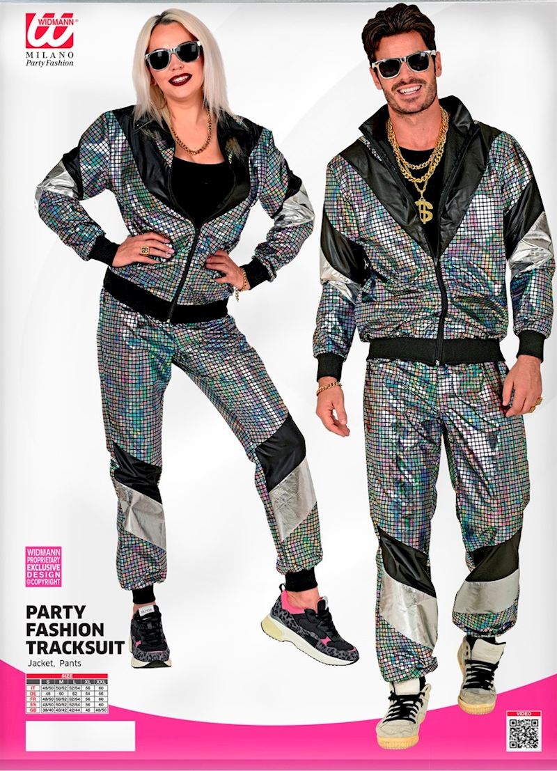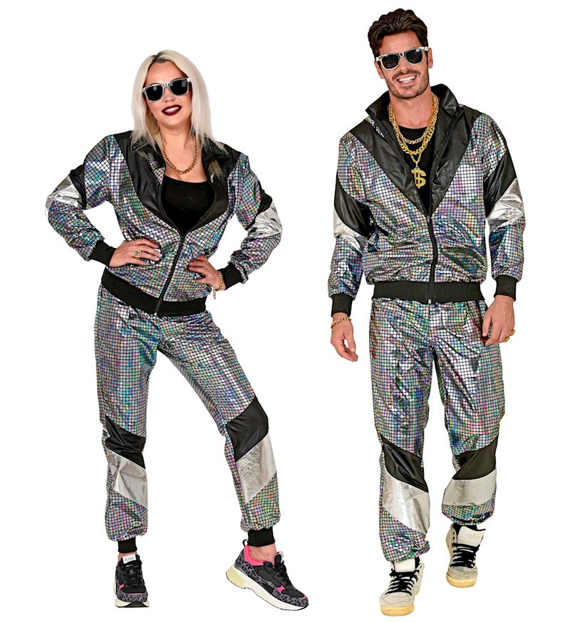 Trainingsanzug 80er Jahre bunt reflektierend, Grösse M