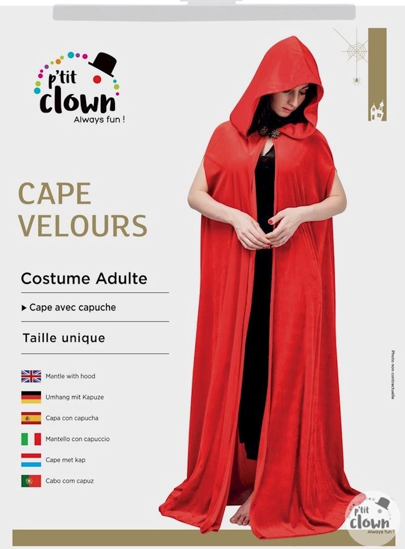Umhang Samt rot mit Kapuze 150 cm
