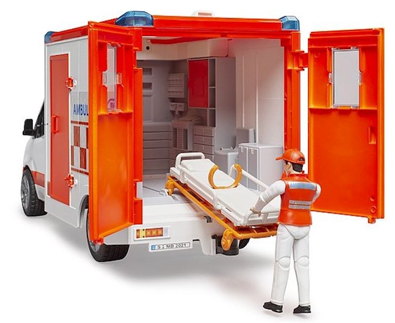 BRUDER MB Sprinter Ambulanz m. Fahrer u. Light + Sound Modul