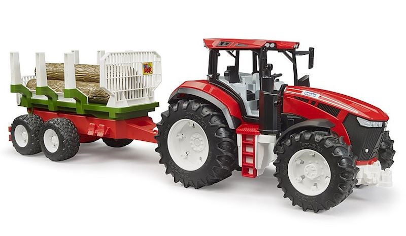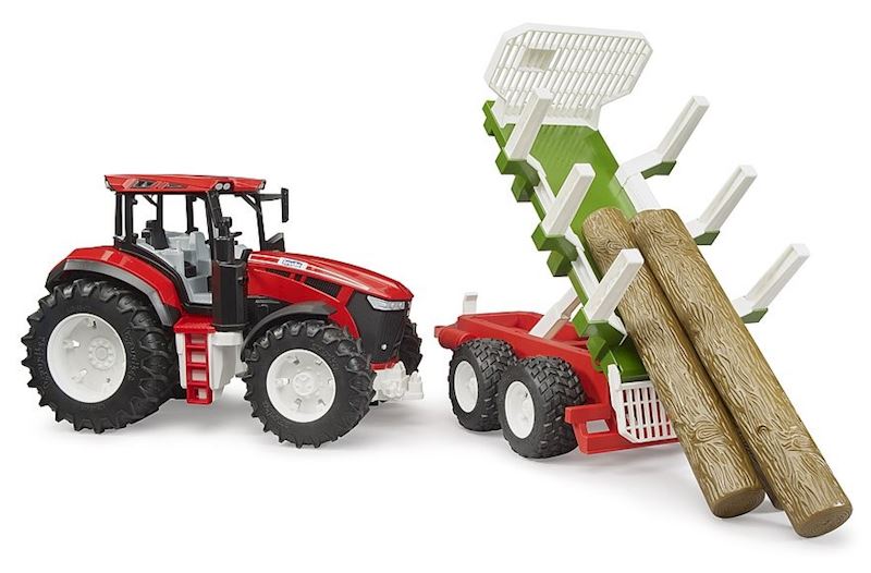 Mit dem neuen ROADMAX Traktor mit Rückeanhänger und Baumstämmen präsentiert BRUDER ein weiteres, tolles Gespann für Kinder ab 2 Jahren in der Themenwelt Forstwirtschaft. Das Modell besitzt ein detailliertes Führerhaus und große, traktortypische Profilräder. Für noch mehr Spielspaß ist bei dieser Kombination ein funktionsfähiger Rückeanhänger mit 3 Baumstämmen enthalten, dessen Ladefläche sich sogar kippen lässt.