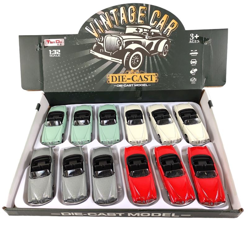 Auto Cabrio zum Aufziehen 1:32 Vintage 4 Farben Metall 12 cm
