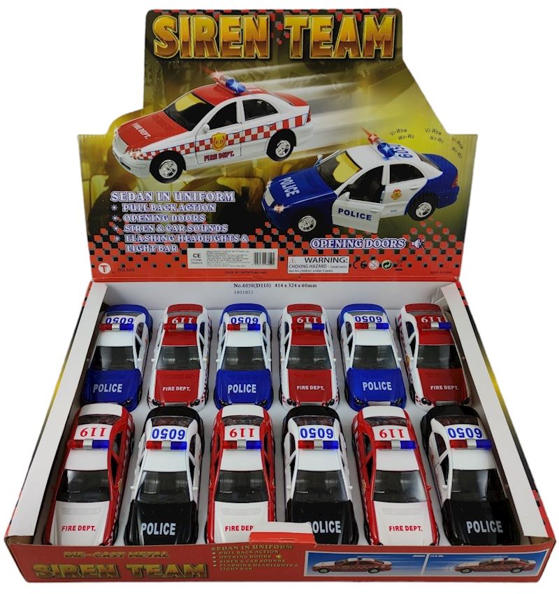 Einsatzfahrzeug 15 cm Metall mit Licht & Sound 4xsort.
