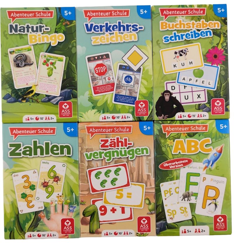 Spielkarten ASS Back to School im Schulbus-Display 6 sort.