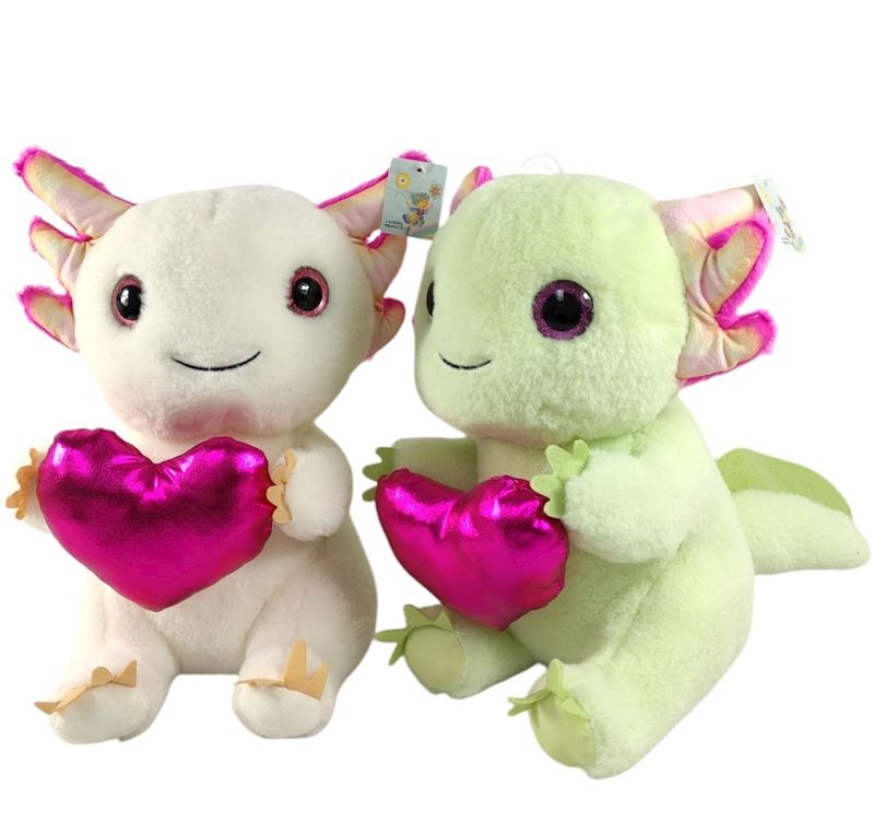 Plüsch Axolotl mit Herz 35 cm 2 Farben sort.