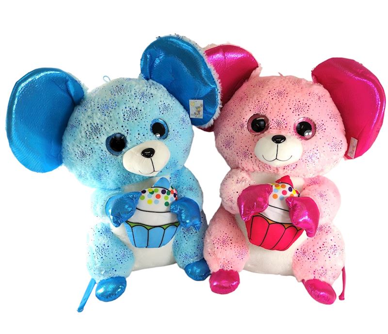 Plüsch Maus mit Cupcake 60cm mit Glitterpunkten 2 Farben