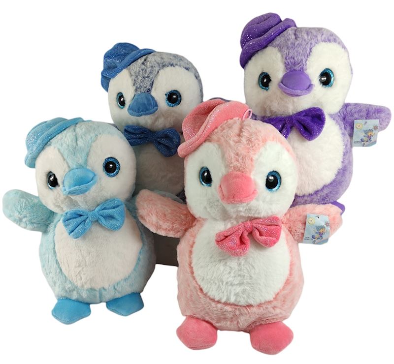 Plüsch Pinguin mit Hut 35 cm 4 sort.