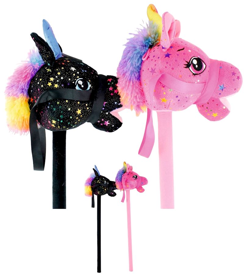 Plüsch Steckenpferd Einhorn 75 cm, 2 Farben schwarz, pink