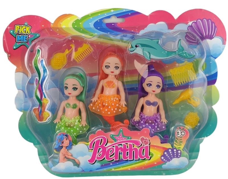 Meerjungfrauen Mini Puppe 3er-Set Bertha 2xsort.