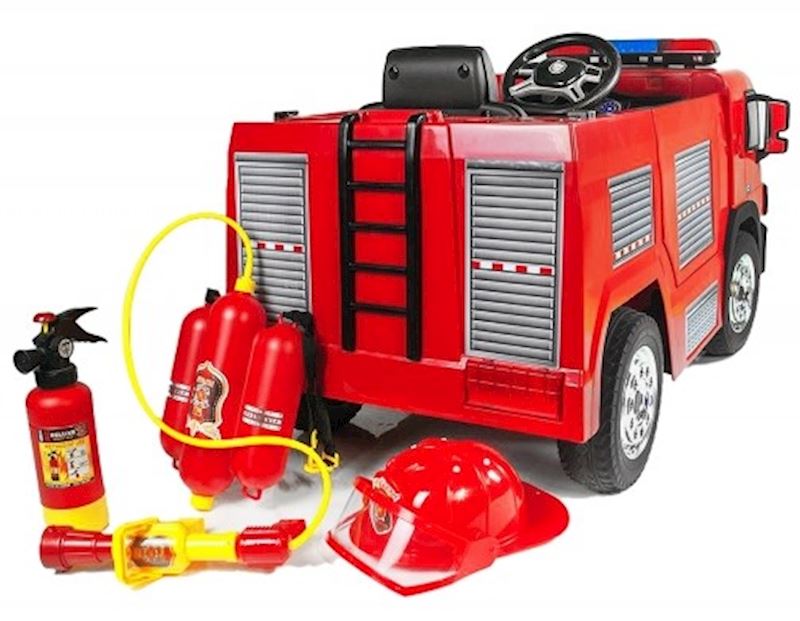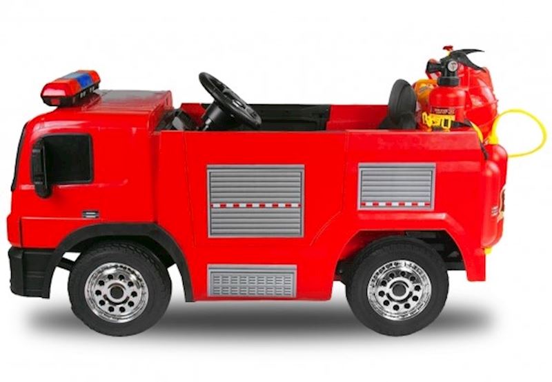 Kinder Elektro Feuerwehrauto Auto 2x 35W 7Ah 2.4G RC Feuerlöscher Signalleuchte Wasserpistole USB, MicroSD Karten Slot, CVT System, LED Scheinwerfer, Feuerwehrwagen Besonderheiten - Kinder Feuerwehrauto - 2x 35W Motoren - LED Felgenbeleuchtung, LED Signalleuchte + LED Scheinwerfer - Feuerwehr Helm - Wasserpistole - Feuerlöscher - EVA Soft Reifen- - Großer 12V 7Ah Akku - Automatik Motorbremse + Stopptaste Fernbedienung (Bremsen per Fernbedienung) - Motor Sound beim Starten - 2.4Ghz Fernbedienung mit ca. 100m Reichweite (höhere Reichweite und kein Eindringen durch andere RC möglich) - CVT Anfahrsystem Soft Start (sanftes Anfahren) - Multifunktion Lenkrad (Musik, Hupe) - 2 Öffnende Türen - Gangauswahl per Tastendruck - 3- Geschwindigkeit Stufen (an der Fernbedienung einstellbar) - 2- Geschwindigkeit Stufen D1, D2, (im Auto einstellbar) - Kunstleder Sitz mit 4-Punk Sicherheitsgurt - Steuerung wahlweise per Fernbedienung oder Gaspedal - Vor- Rückwärtsgang - Inkl. Ladegerät und abnehmbarem Fahrakku