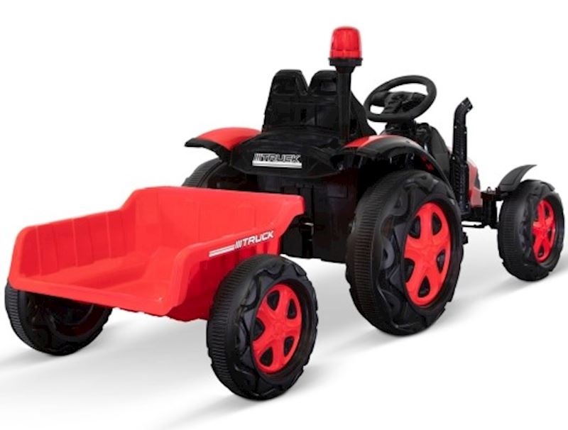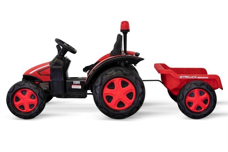 Kinder Elektro Traktor mit Warnleuchte 2x35W 12V/7Ah inkl. Anhänger LED Warnleuchte, LED Scheinwerfer, 2.4G Fernbedienung Highlights: - 2x 35W Motoren - Boardcomputer mit USB Port - Motor Sound beim Starten - LED Scheinwerfer + LED Warnleuchte - 4Ghz Fernbedienung mit ca. 100m Reichweite (höhere Reichweite und kein Eindringen durch andere RC möglich) - CVT Anfahrsystem Soft Start (sanftes Anfahren) Besonderheiten: - Kinder Elektro Traktor - Inklusive 12V 7Ah Batterie - Automatik Motorbremse - Hupe am Lenkrad - 3- Geschwindigkeit Stufen (an der Fernbedienung einstellbar) - Steuerung wahlweise per Fernbedienung oder Gaspedal - Sicherheitsgurt - Inkl. Ladegerät - Vor- Rückwärtsgang