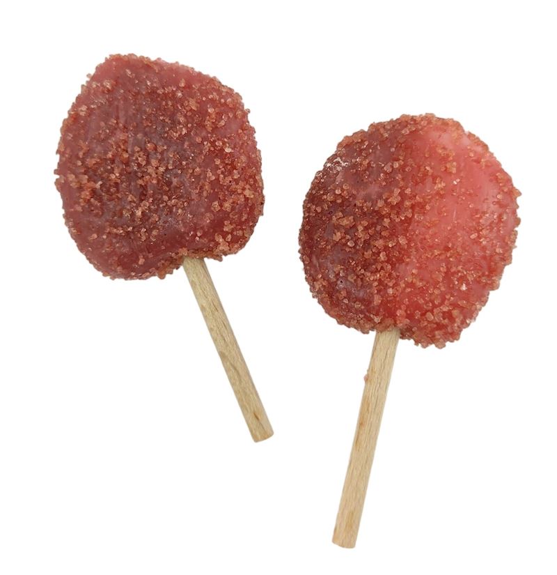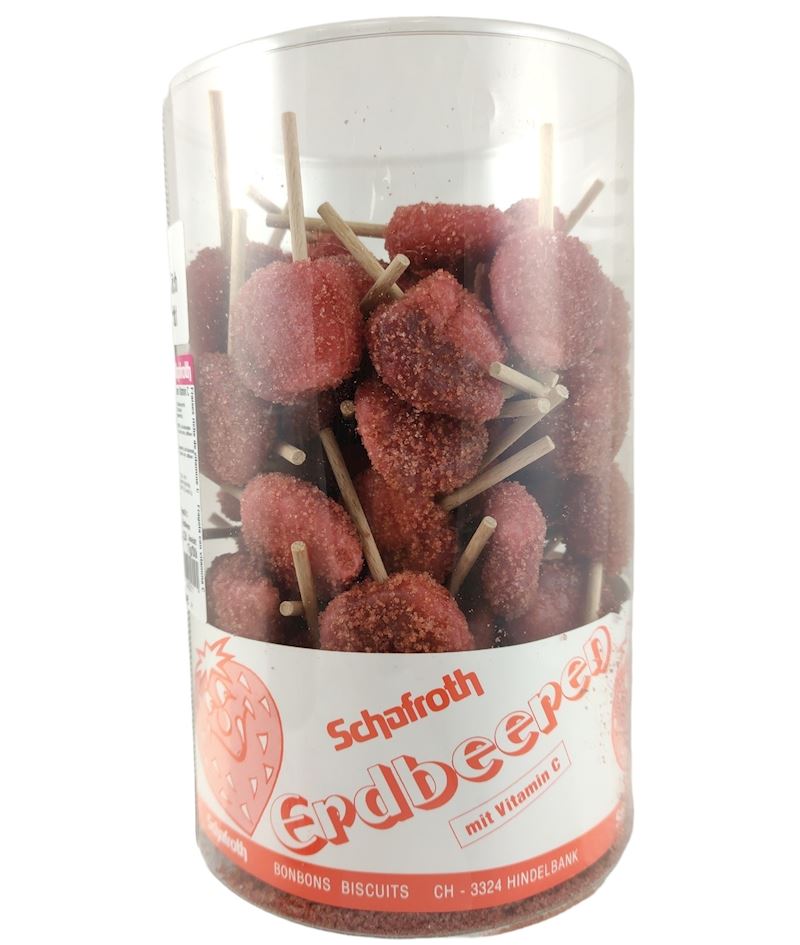 - Zucker, Glukosesirup, Säuerungsmittel(Weinsäure E334), Vitamin C, Ascorbinsäure (E300), Aroma, Farbstoff: Cochenillerot (E124)