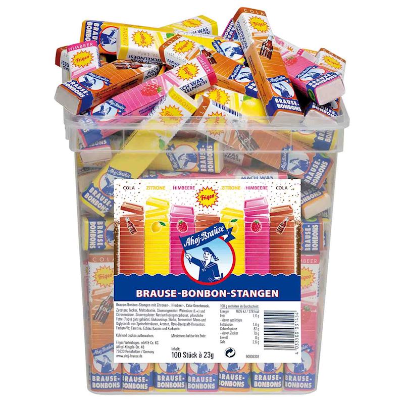 - Zucker, Maltodextrin, Säuerungsmittel (Weinsäure, Zitronensäure), Säureregulator (Natriumhydrogencarbonat), Pflanzenfett (Raps), komplett gehärtet, Glukosesirup, Stärke, Trennmittel (Mono- und Diglyceride der Speisefettsäuren), Aromen, Rote Bete saft Konzentrat, Farbstoffe (Carotine, Echtes Karmin, Kurkuma).