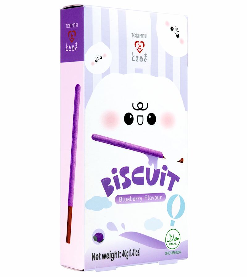 - Biscuit stick 66%: WEIZENMEHL 49.23%, Zucker, Palmöl, MILCHpulver, Salz, Backtriebmittel E500ii, E503ii, Säureregulator E450i, Emulgator E322 (SOJA), Vanillin; Schokolade mit Heidelbeergeschmack und Kakaobutter 34%: Palmkernöl, Zucker, MILCHpulver, Heidelbeerpulver, Emulgator E322 (SOJA), Säureregulator E330, Farbstoff E162