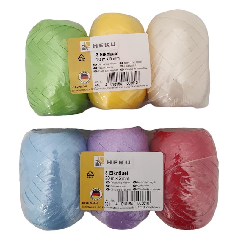 Geschenkband 3 Stk im Polybag Eiknäuel 3x20m, diverse Farben