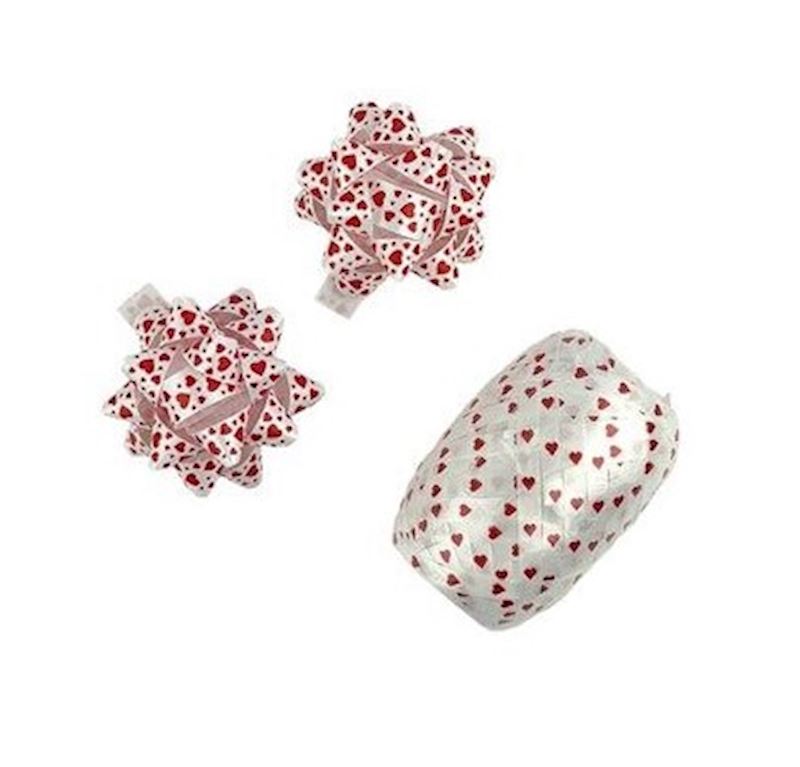 Polyband Geschenk Set, weiss mit Herzen, 1 Rolle und