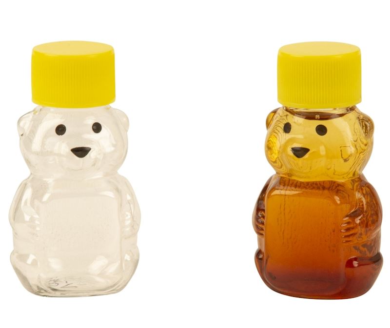 Plastik Bär Flasche 40-50 ml leer, mit gelbem Deckel