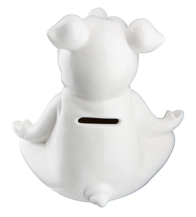 Sparschwein Yoga Viel Glück Porzellan weiss 14 cm