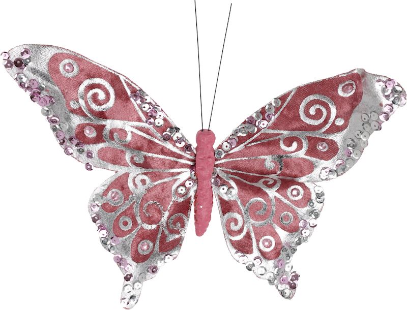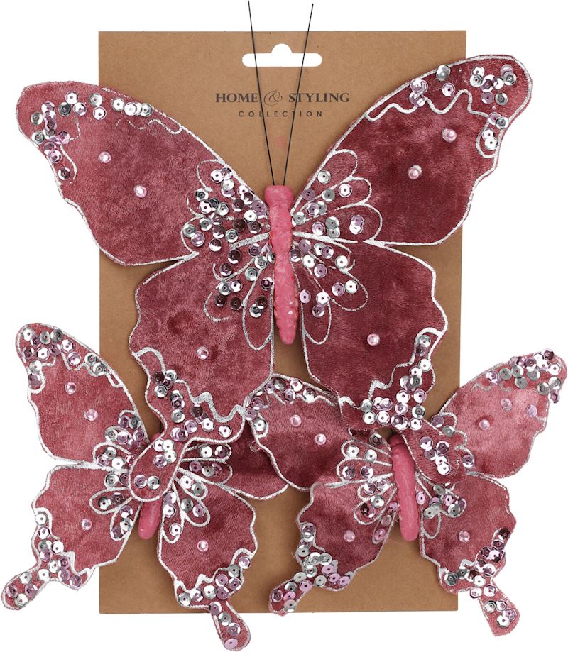 Schmetterling mit Clip 3er Set rosa mit Pailetten 3xsort.