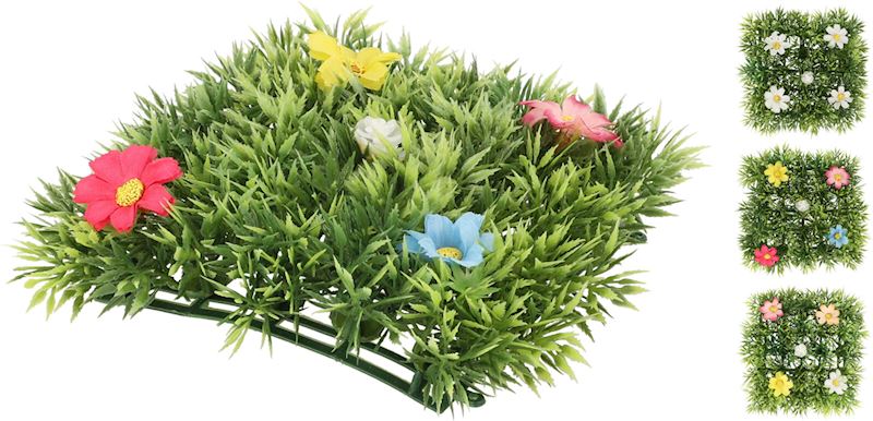 Grasmatte 10x10 cm mit Blumen 3 sort.
