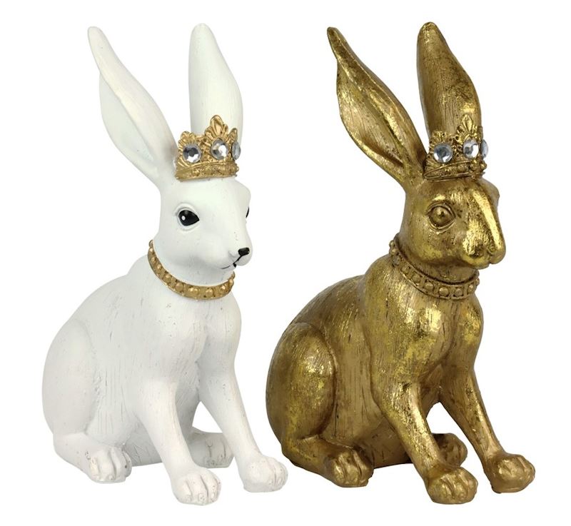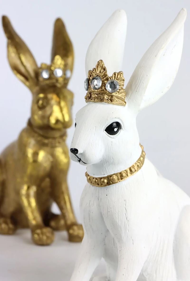 Hase Queen aus Polyresin 18 cm weiss & gold sort.