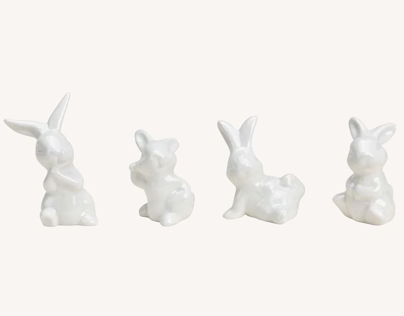 Hase aus Porzellan weiss 4-fach sortiert, 6-7 cm