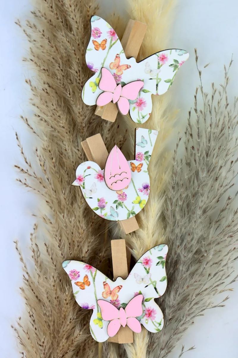 Holzklammern Frühling 6 Stk. 2xsort.