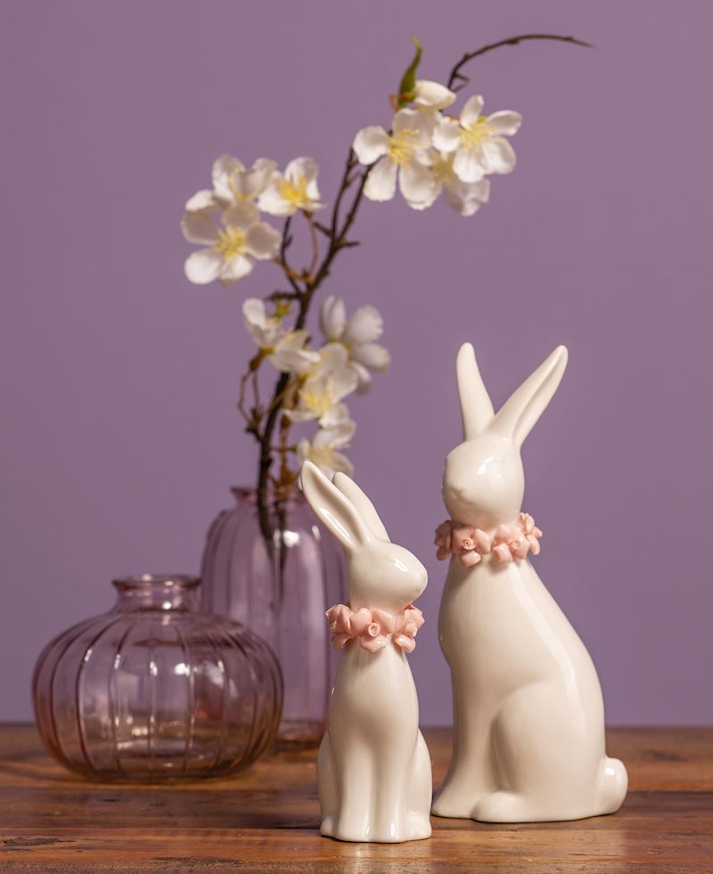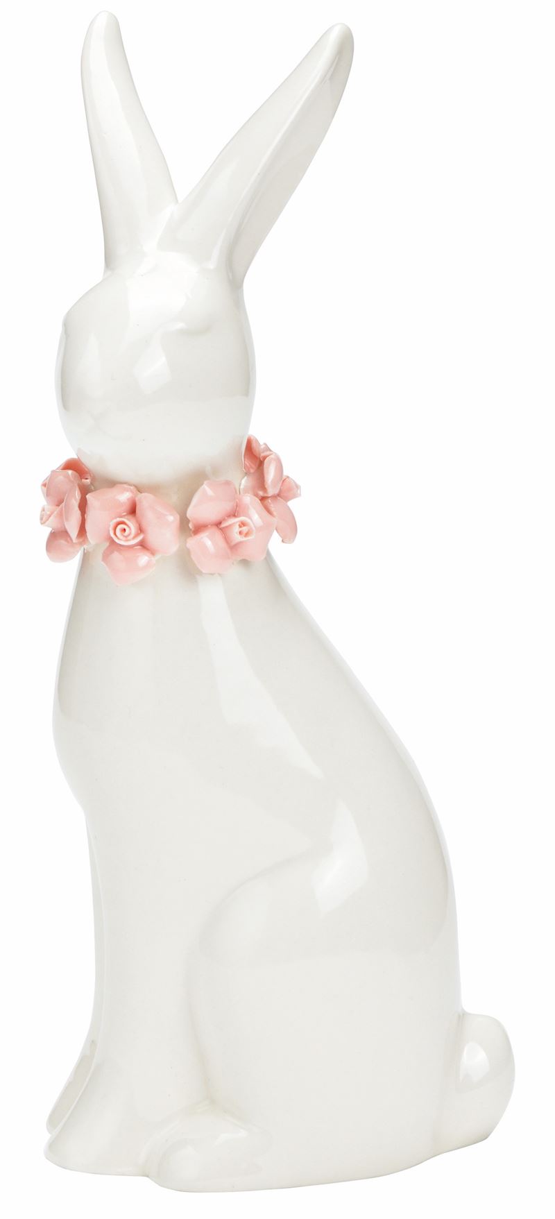 Keramik Hase weiss mit Blumenkranz rosa 7x18x5 cm