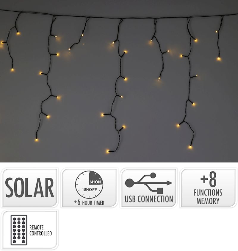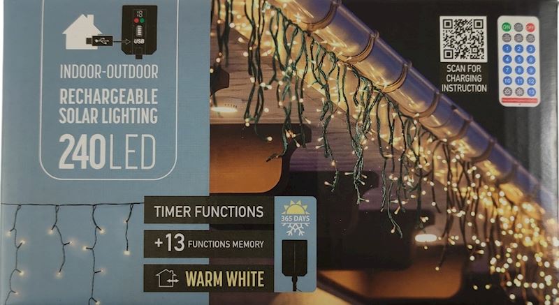 Solar Lichterkette warm weiss 13 Funk. 240 LED Timer 780 cm