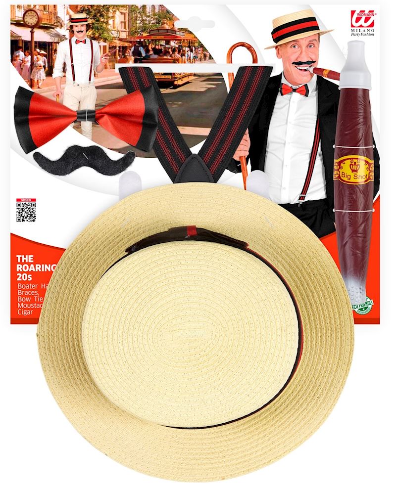 Set 20er-Jahre, Schiebermütze, Hosenträger, Schnauz, Zigarre