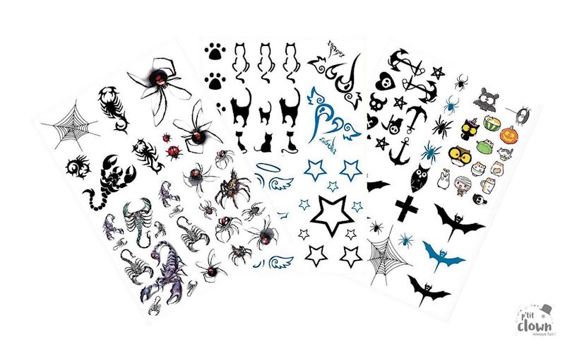 Halloweentattoos 1 Bogen à 21cm x 14.8cm 3xsort.